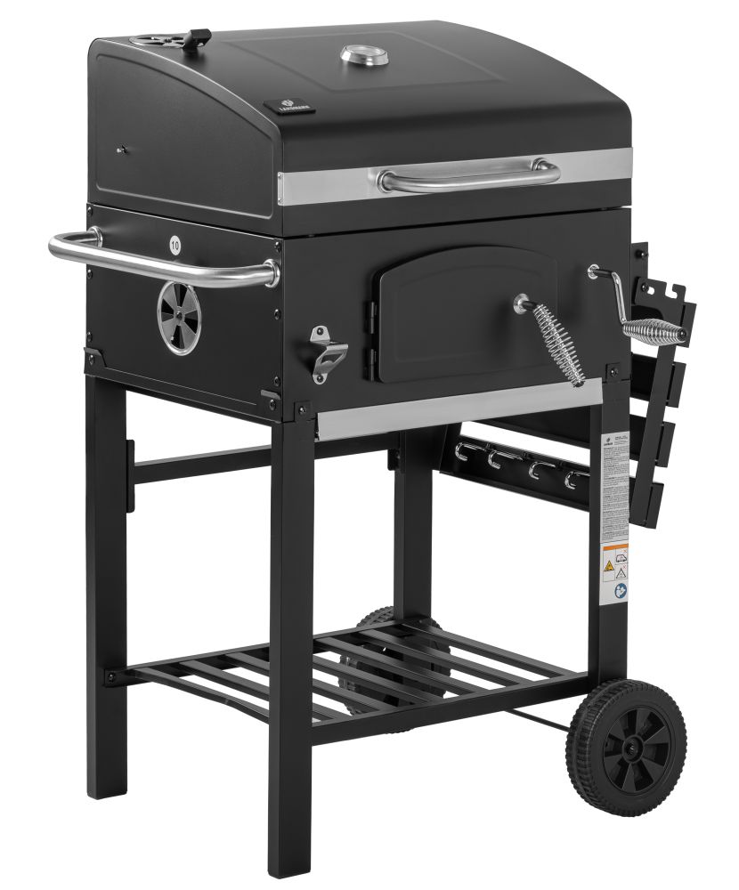 - metalowa półka dolna gwarantująca odpowiednią sztywnośći stabilność konstrukcji grilla;
