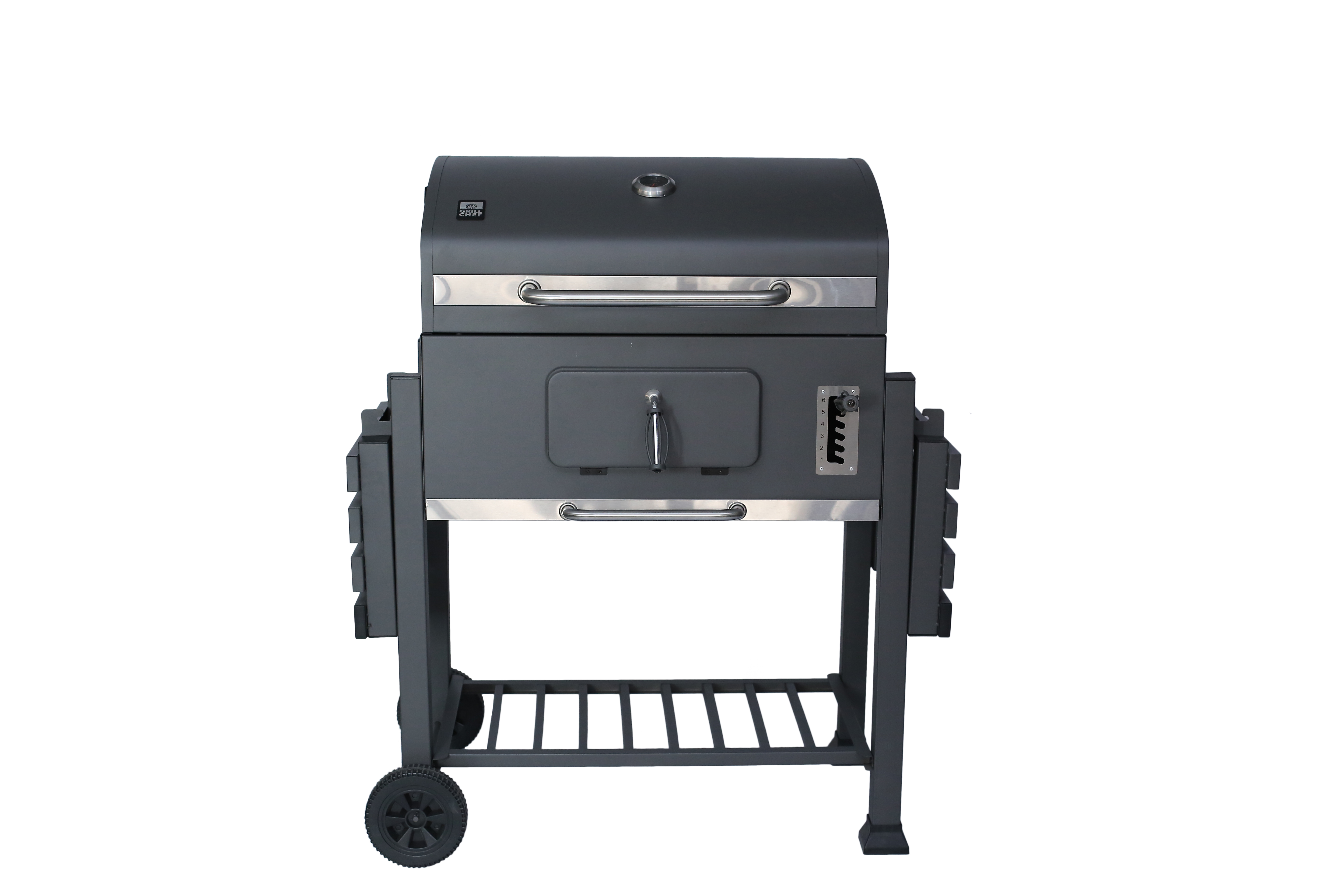 Ważący niemal 50 kilogramów grill węglowy komfort XXL to propozycja dla prawdziwych fanów letniego grillowania. Wykonany z lakierowanej proszkowo blachy stalowej sprzęt wyróżnia się ponadprzeciętną trwałością, na którą składają się również uchwyty i listwy wykonane ze szczotkowanej stali szlachetnej. Co więcej, grill wózek posiada 2 kółka w podstawie, dzięki czemu w sezonie zimowym wygodnie przestawisz go pod zadaszenie.