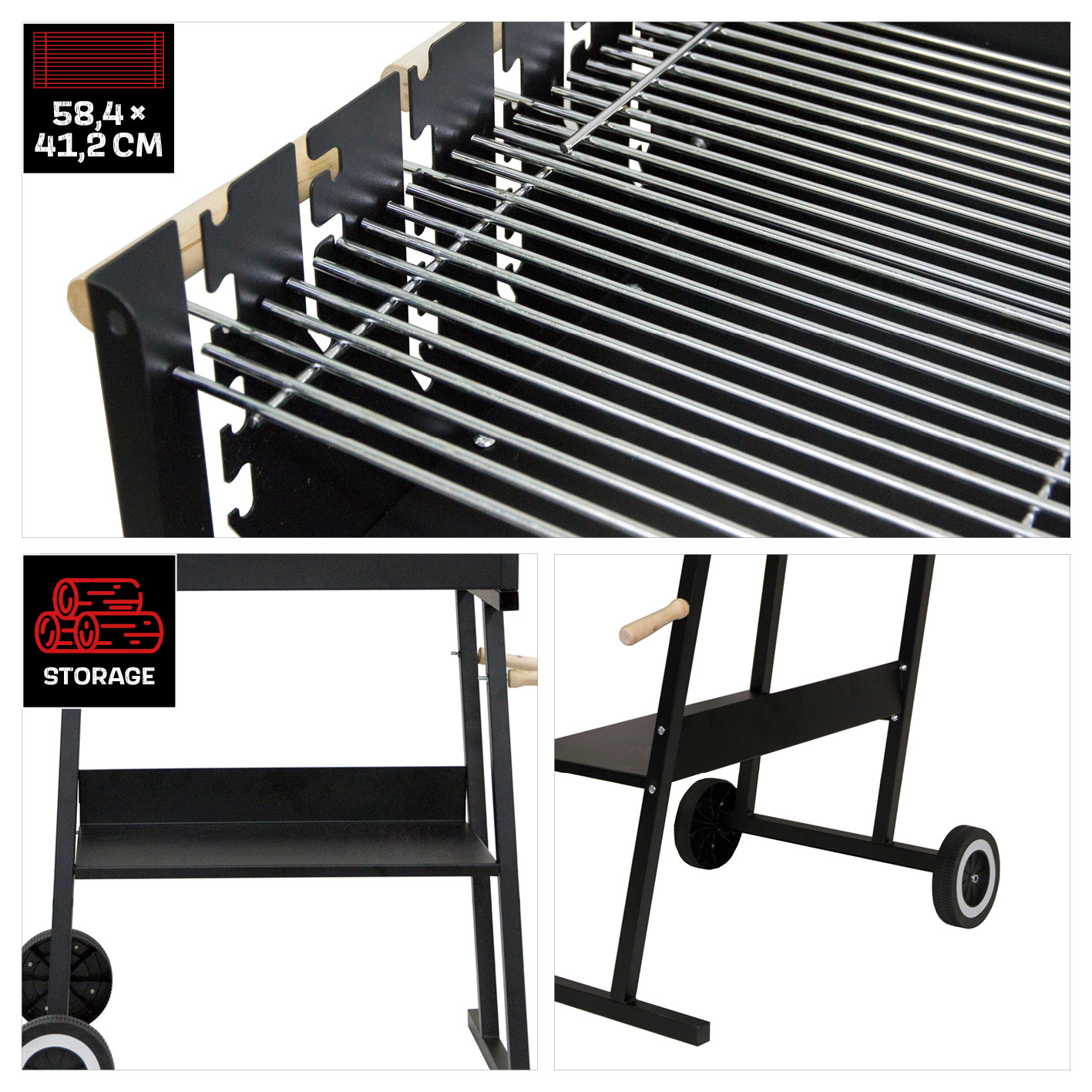 Grill węglowy z tej serii zapewnia dużą powierzchnię rusztu – 58,5 x 41 cm, dzięki której przyrządzisz potrawy dla ponad 10 osób! Ruszty są aż dwa i umieszczone zostały niezależnie od siebie, co znacznie ułatwia użytkowanie. Mimo dużego rozmiaru, grill węglowy posiada koła o idealnej średnicy, umożliwiające przemieszczenie na każdym terenie. Odwiedź nasz sklep internetowy i sprawdź również inne produkty.
