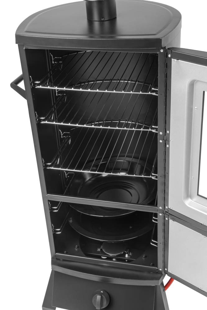 Wędzarnia gazowa Model 15476 to funkcjonalne urządzenie stworzone dla miłośników wędzenia na poziomie domowym i półprofesjonalnym. Przezroczyste okienko umożliwia bieżącą kontrolę procesu bez utraty temperatury, a solidna konstrukcja i precyzyjna regulacja palnika gwarantują doskonałe rezultaty wędzenia.