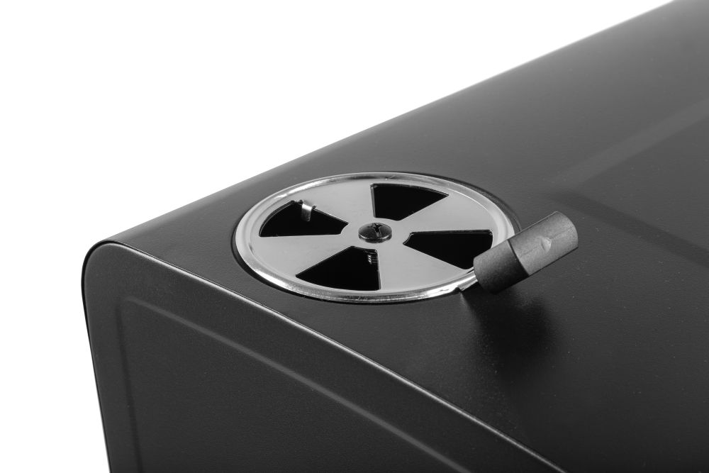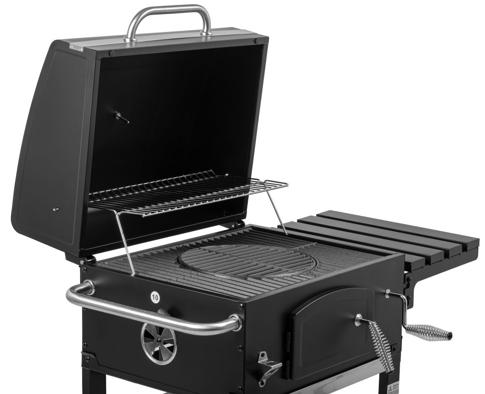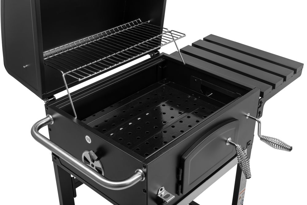 - sterowanie temperaturą grillowania za pomocą płynnej regulacji wysokości paleniska;