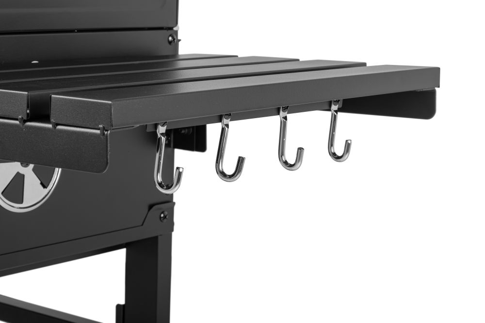 - metalowa półka dolna gwarantująca odpowiednią sztywnośći stabilność konstrukcji grilla;
