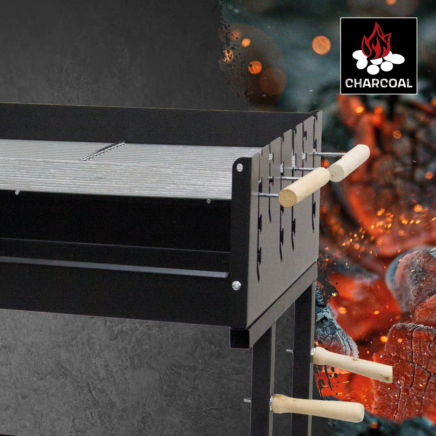 Grill węglowy z tej serii zapewnia dużą powierzchnię rusztu – 58,5 x 41 cm, dzięki której przyrządzisz potrawy dla ponad 10 osób! Ruszty są aż dwa i umieszczone zostały niezależnie od siebie, co znacznie ułatwia użytkowanie. Mimo dużego rozmiaru, grill węglowy posiada koła o idealnej średnicy, umożliwiające przemieszczenie na każdym terenie. Odwiedź nasz sklep internetowy i sprawdź również inne produkty.